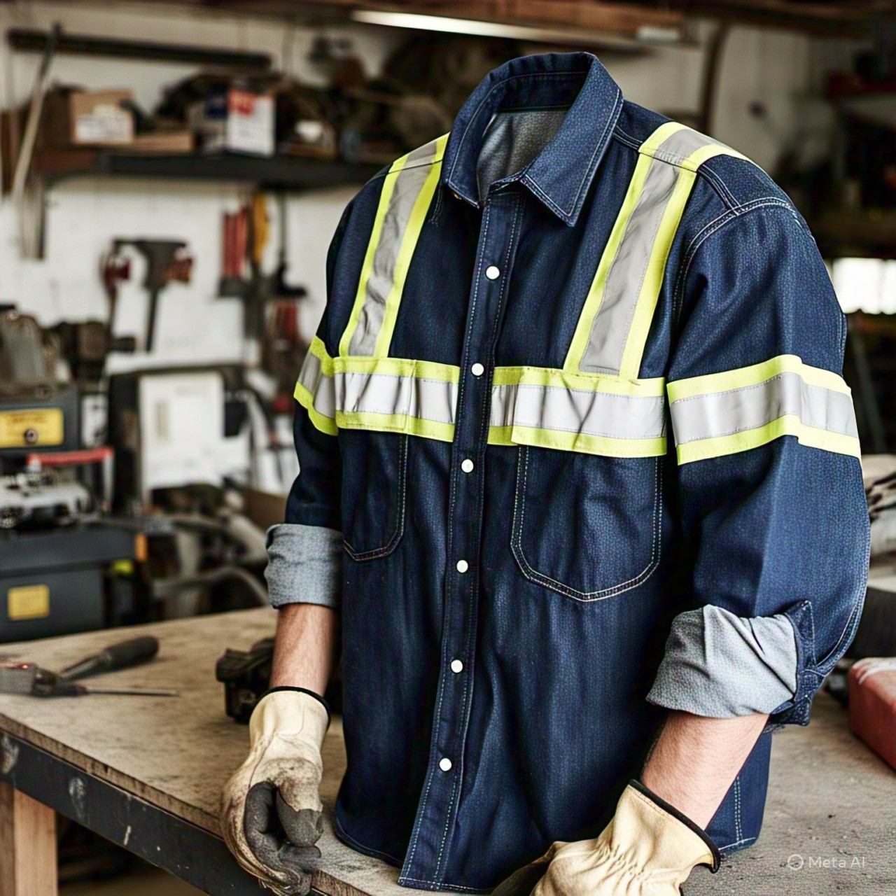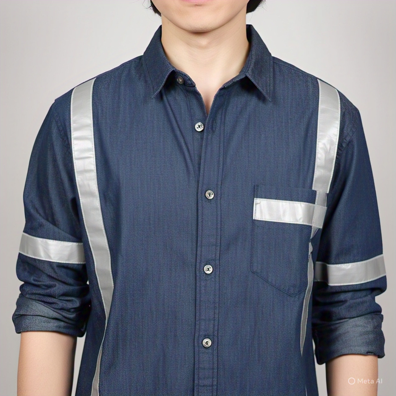 CAMISOLA DE MEZCLILLA INDUSTRIAL CON REFLECTANTE 100% ALG